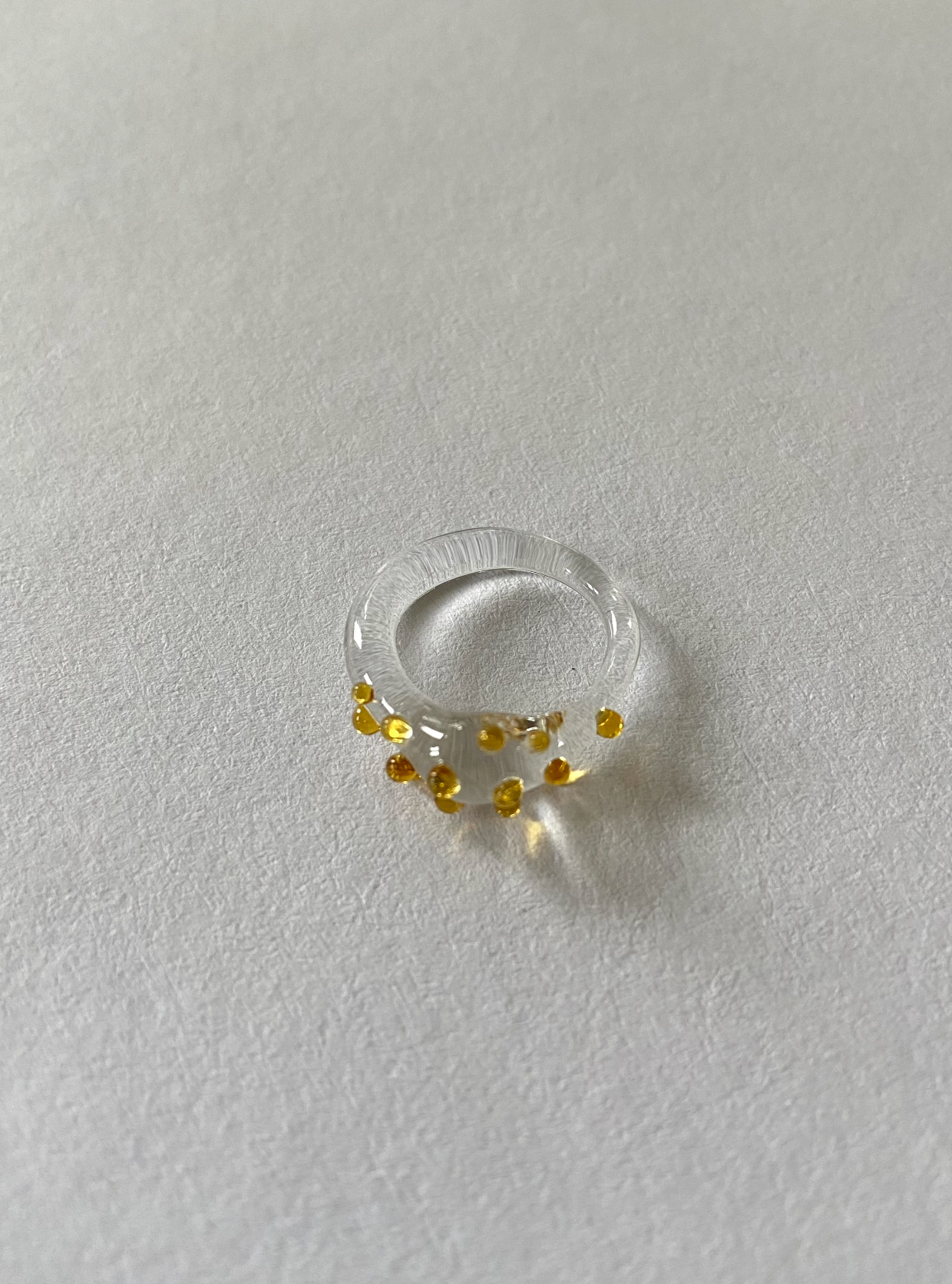 Each piece is hand-formed in borosilicate glass, created through glass-blowing and lampworking techniques. Every ring is entirely unique, one-of-a-kind, and shaped by hand.