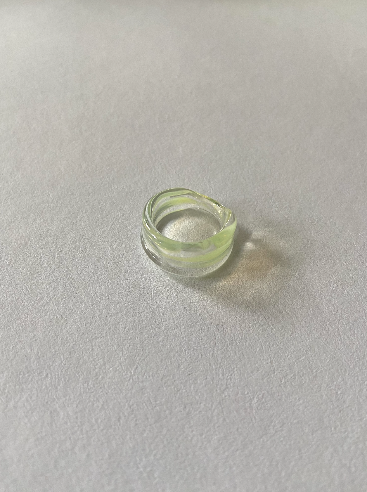 Each piece is hand-formed in borosilicate glass, created through glass-blowing and lampworking techniques. Every ring is entirely unique, one-of-a-kind, and shaped by hand.